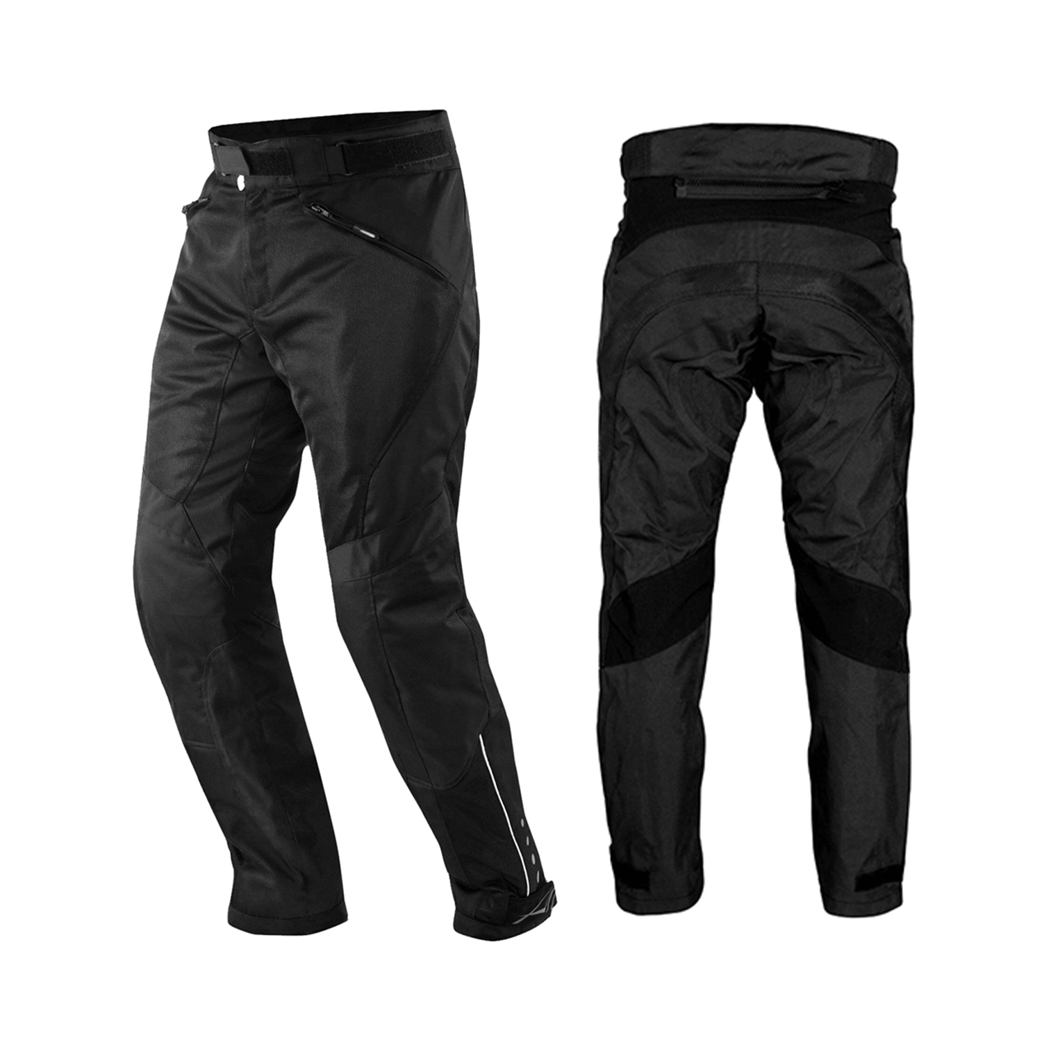 Safety is further enhanced with high-visibility textile pants panels in reflective or neon accents, improving rider visibility in low-light conditions. Heavy-duty anti-slip closures — including zippers, Velcro, and snap buttons — ensure the pants remain secure even during high-speed riding. Multiple utility pockets add practicality, allowing riders to carry essentials such as keys, wallets, or tools.